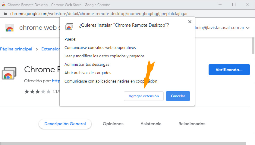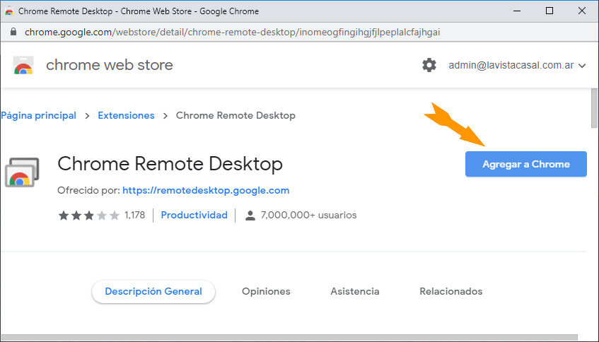(utilice Chrome como navegador, debido a que el servicio Escritorio Remoto de Chrome es una extensión que sólo funciona con dicho navegador)