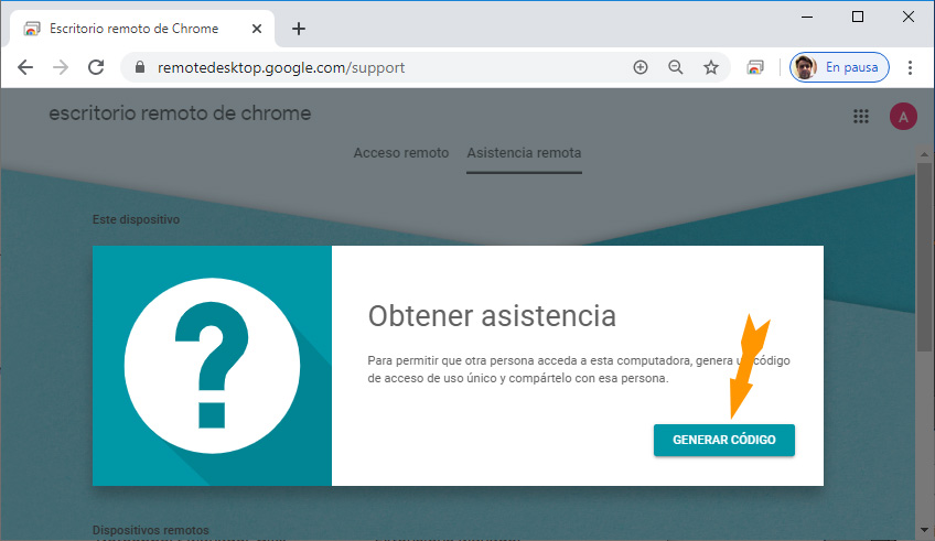 Ingrese a https://remotedesktop.google.com/support